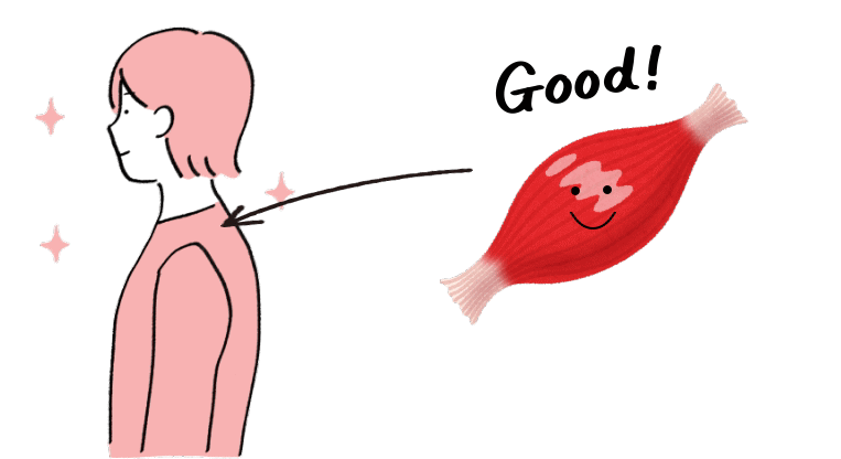 猫背で肩の位置が前にズレることによって、肩の筋肉(僧帽筋)が引っ張られ緊張状態になります。