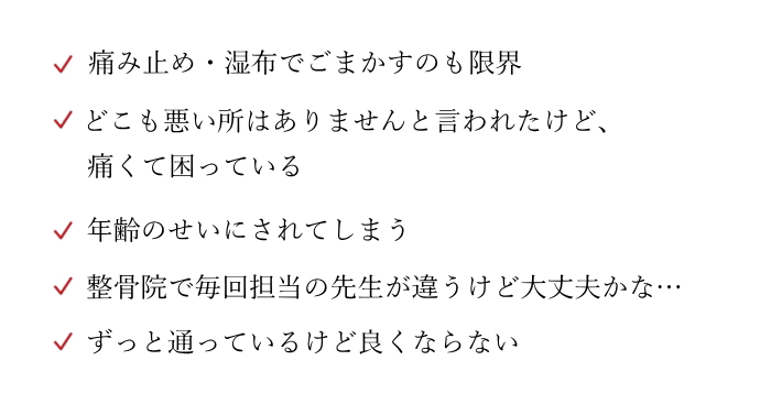 マッサージを受けてもすぐに戻ってしまう理由は、根本原因にアプローチできていないからです。
